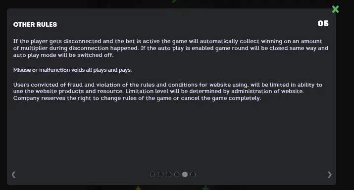 The paytable in Roll X is straightforward, reflecting the game’s simple yet engaging mechanics. It outlines the potential rewards based on the player’s chosen bet amount and win multiplier, providing clear information on possible outcomes.